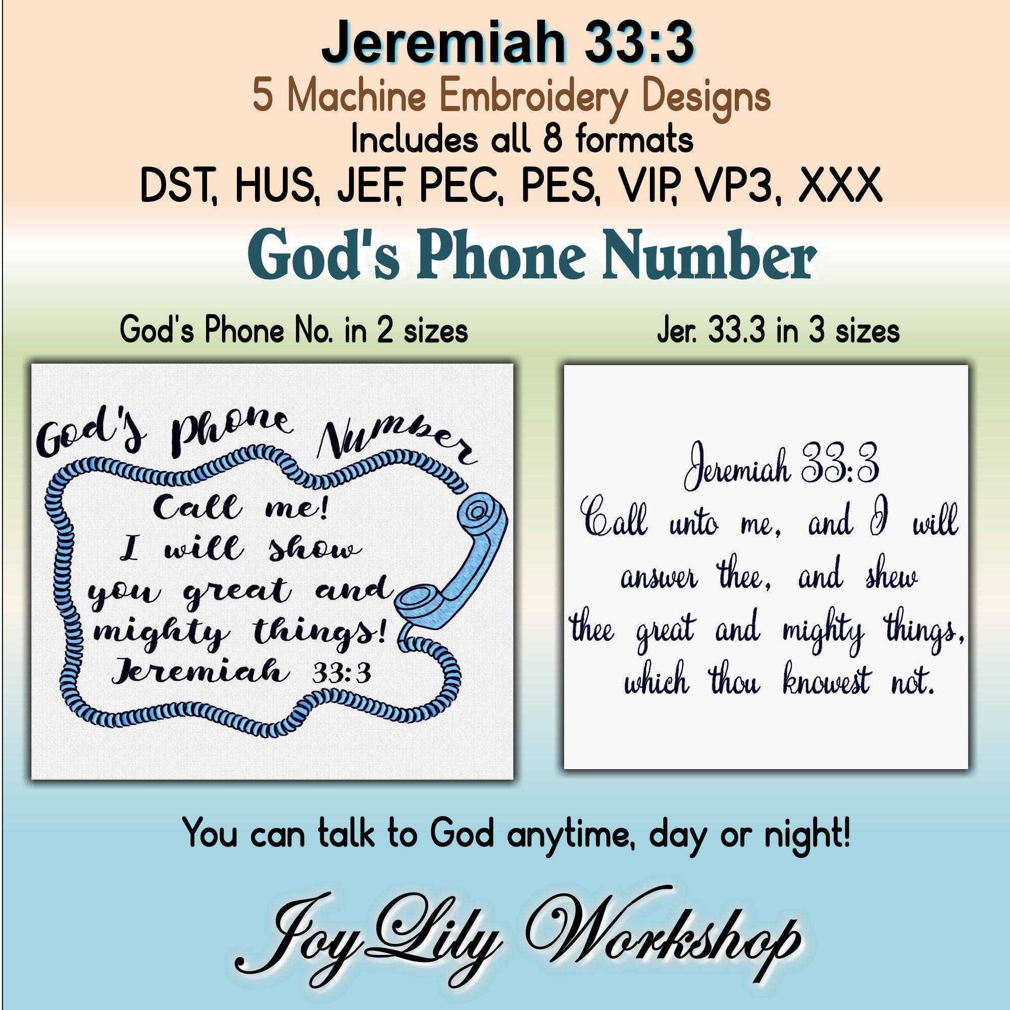 When I shared my story with my friend Sue the other day she recognized the scripture God gave me and told me that some people call Jeremiah 333 Gods phone number. He satisfies and every need supplies Yes He knows just what I need. A Sunday School teacher once taught her class of children that Gods phone number was 3-3-3 as in Jeremiah 333.